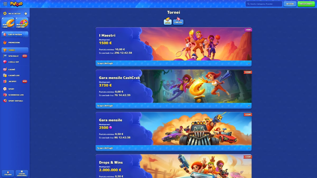 In sintesi, Pistolo Casino si presenta come una scelta flessibile per i giocatori italiani che cercano varietà di giochi, soluzioni di pagamento moderne e un'esperienza tutto-in-uno tra casinò e scommesse sportive.