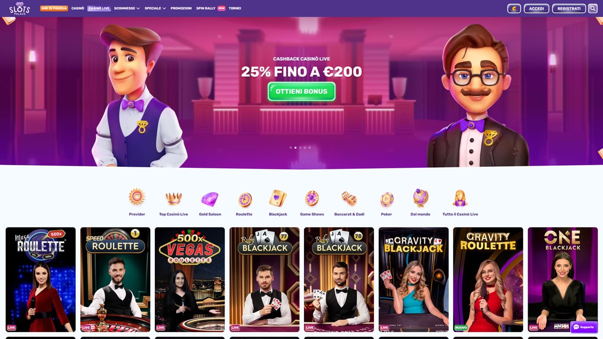 - Oltre 500 giochi con croupier dal vivo, più categorie e tavoli live speciali.