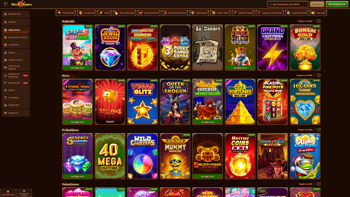 Casino WildRobin offre un ambiente di gioco energico e coinvolgente, progettato per attrarre sia i giocatori occasionali che gli appassionati esperti. La piattaforma vanta un portafoglio di intrattenimento variegato, che include slot classiche e moderne, popolari giochi da tavolo ed esperienze interattive con croupier dal vivo. I giocatori possono esplorare di tutto, dalle slot video veloci ai giochi di carte basati sull'abilità, fino a diverse varianti della roulette. Tutti i titoli sono forniti da noti sviluppatori di software, garantendo un gioco affidabile, grafica curata e prestazioni costanti su tutti i dispositivi. Con la sua ampia selezione di giochi e l'attenzione alla qualità, WildRobin Casino si presenta come una destinazione versatile per sessioni di gioco online coinvolgenti e piacevoli.